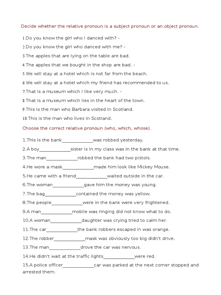 Relative Clauses شرح Pdf / Relative Pronouns Worksheet : A relative clause is a type of subordinate clause introduced by a relative pronoun.